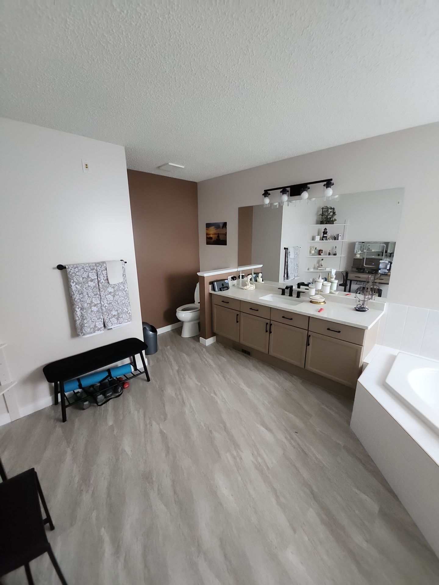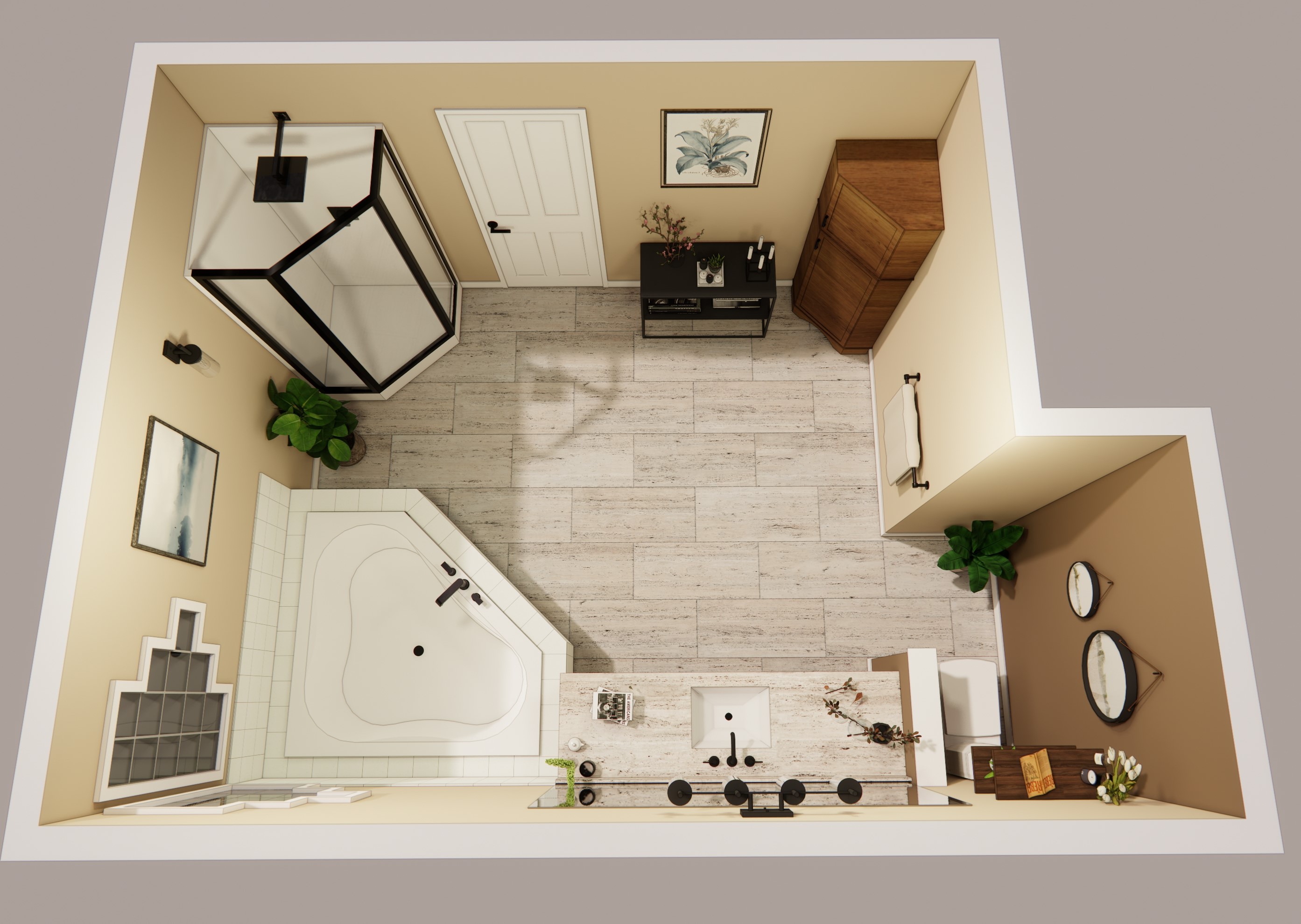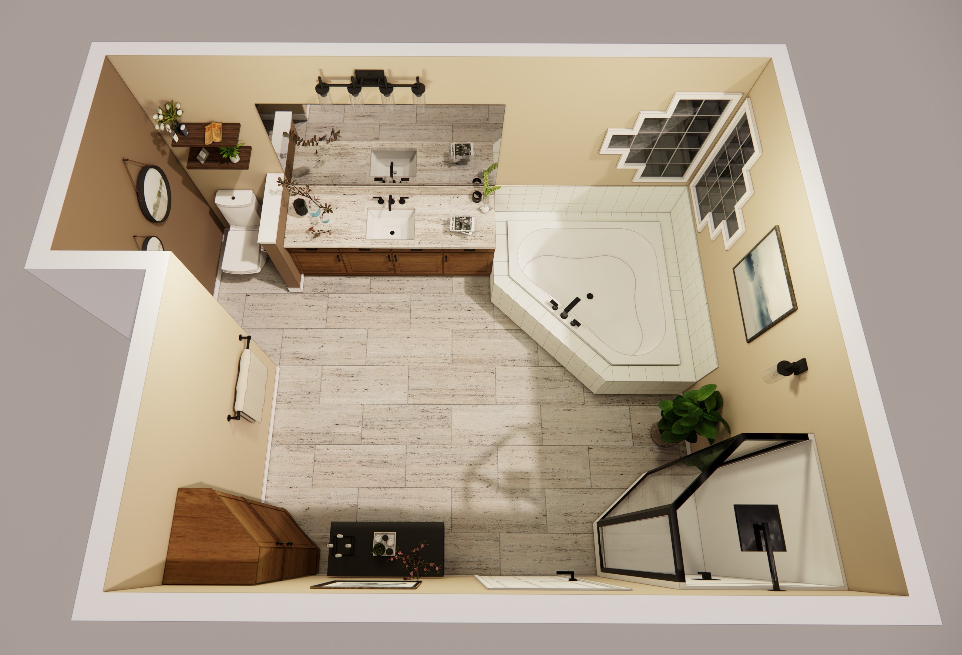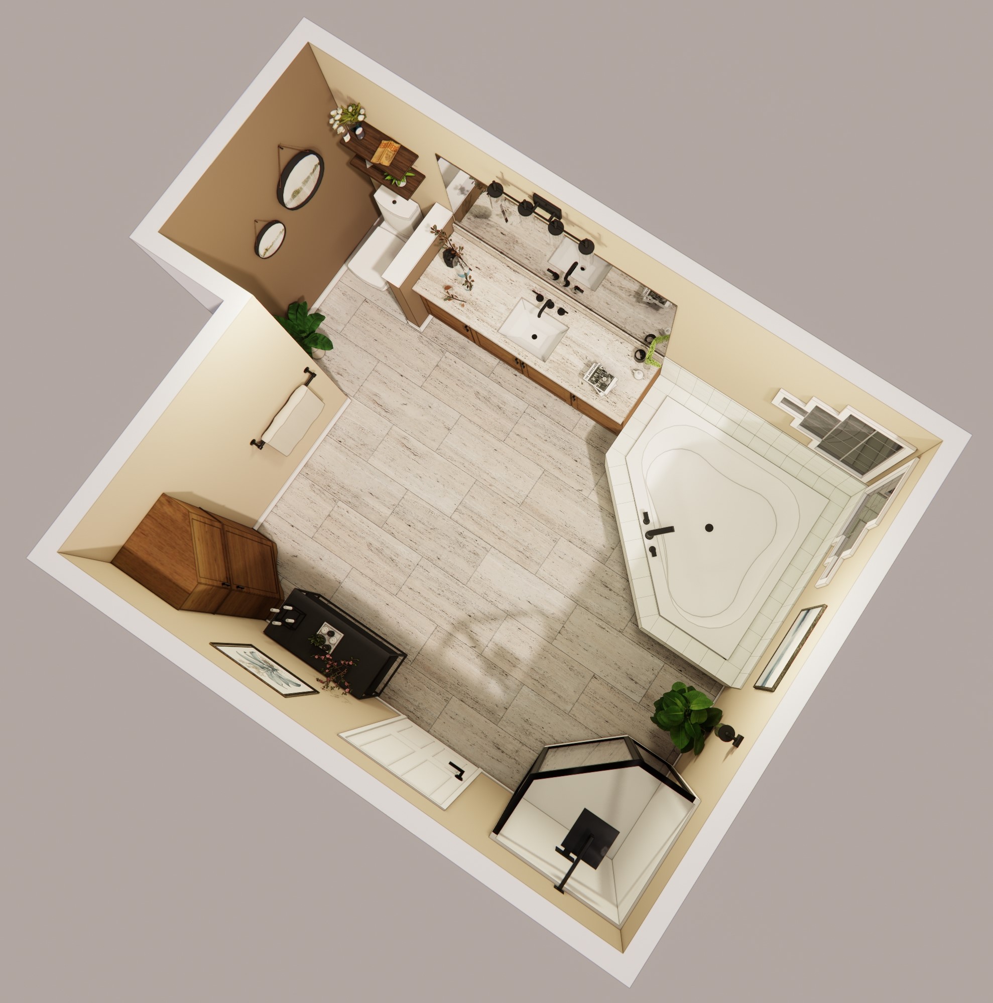 - Updated vanity configuration, including a corner cabinet for improved storage