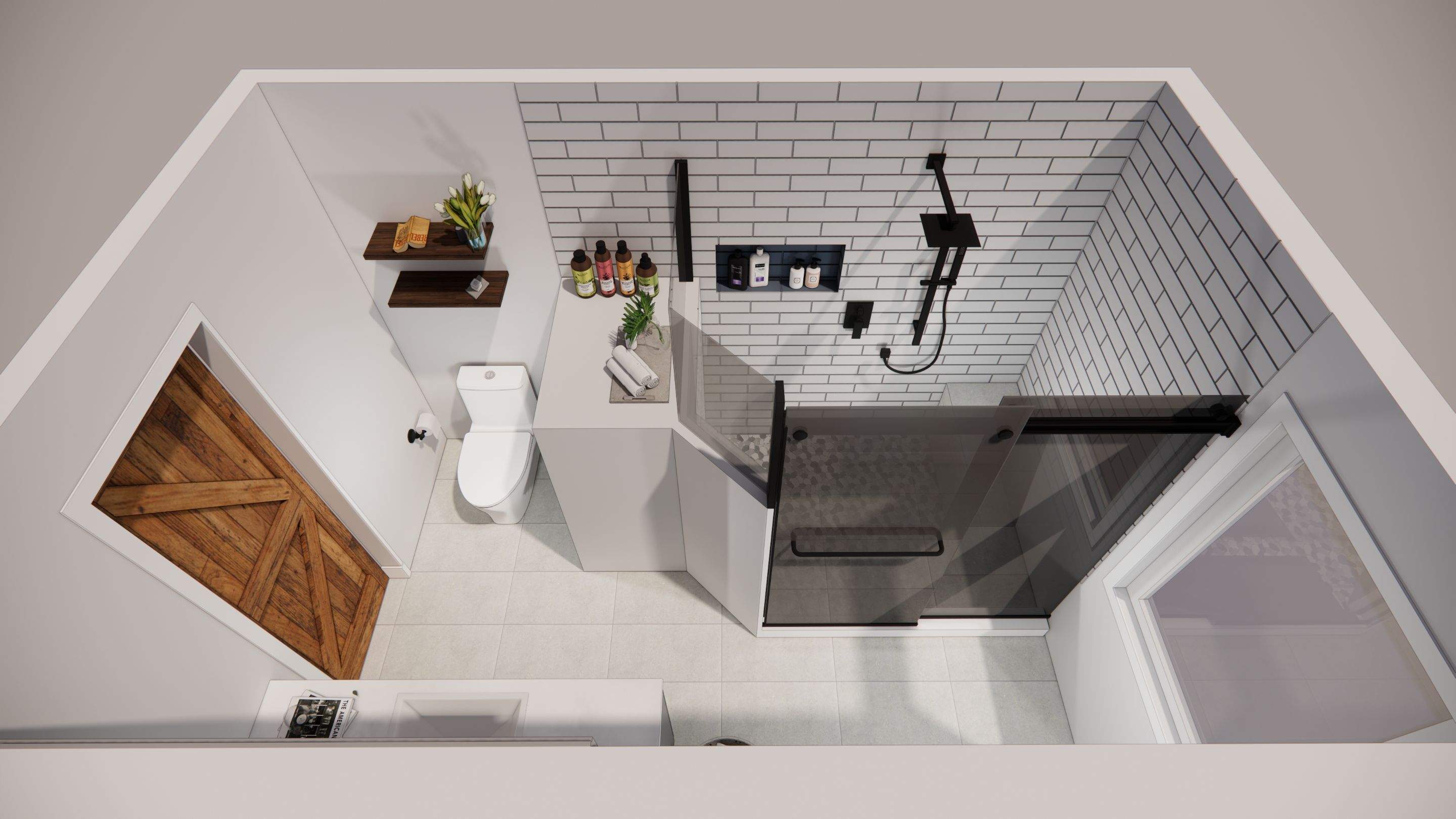 To finish it off, the ensuite was styled with feature shiplap, floating shelves, and a barn door entry, tying together all the new fixtures, tile, and quartz into a cohesive master retreat that matches the rest of the home’s planned upgrades.